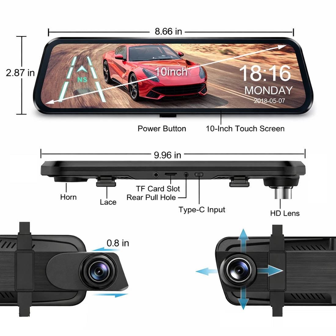 • Installation Type: Mirror Dash Cam — compatible with all vehicle types using rubber strap mounting.
