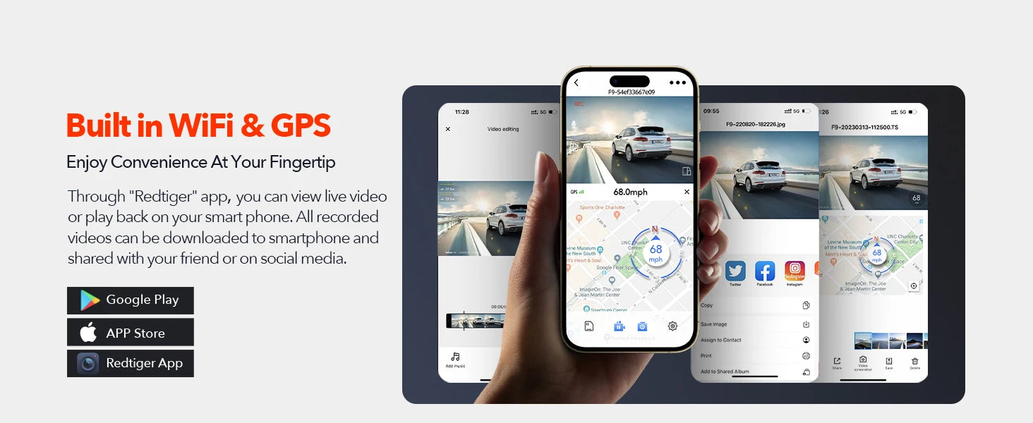 REDTIGER F9 4K Front and 1080P Rear WiFi GPS Dash Camera